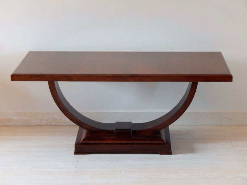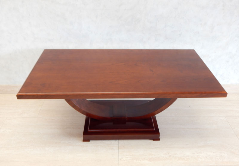 Art Deco alacsony asztal [B-16] Árukód : [B-16] Ár: 265 000 FtDiófa vagy mahagóni borítással, íves diófa lábakkal.Méret: 120 x 60 cm. Magasság: 50 cmA méret és formaváltozás 10 – 30 % felárat jelent.