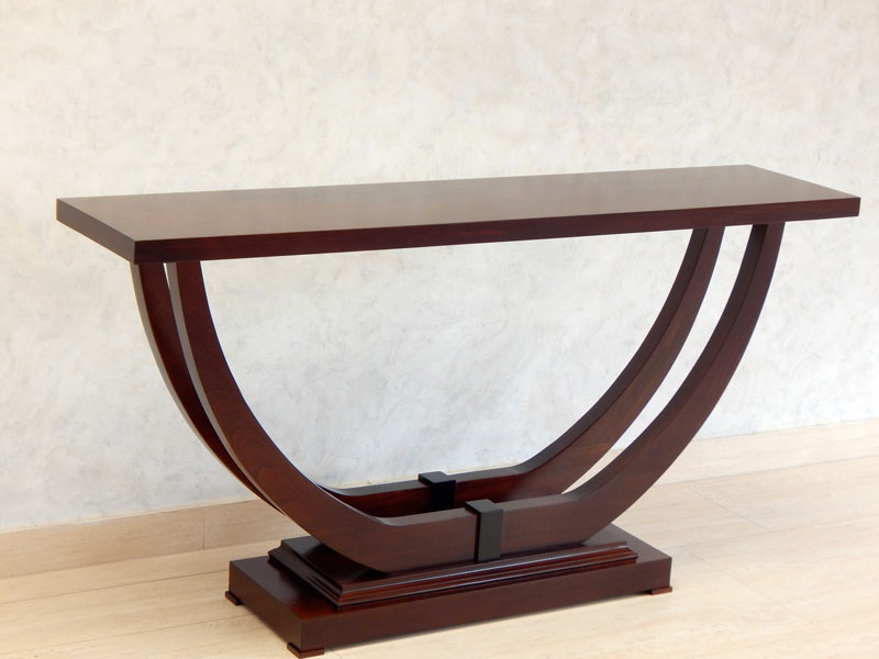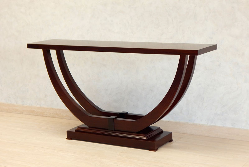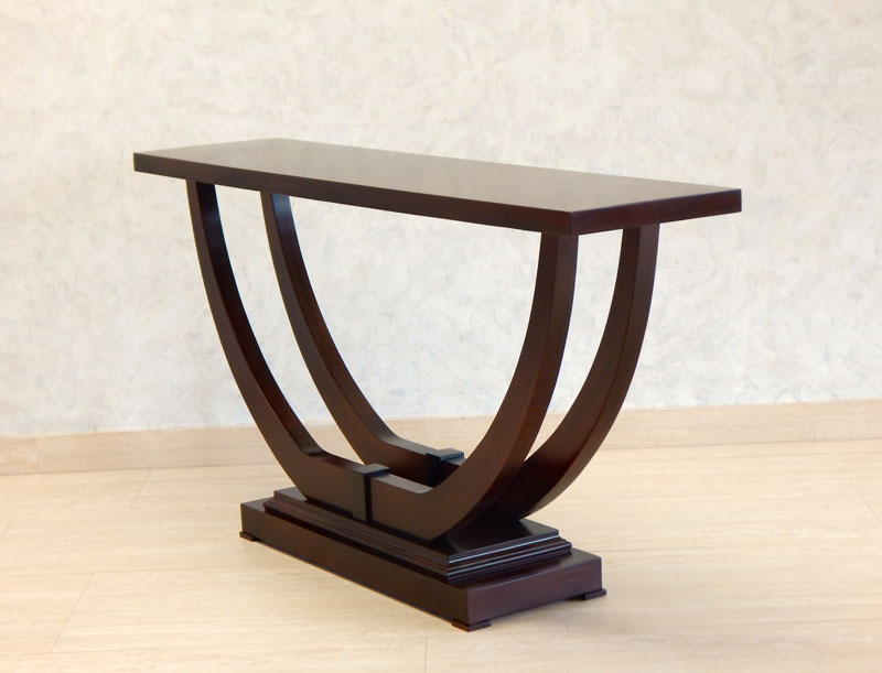 Art Deco konzolasztal nagyméretű [B-54] Árukód : [B-54] Ár: 320 000 FtDiófa, mahagóni vagy paliszander borítással, kehely alakú íves diófa lábakkal.Mérete: 130 x 35 cm, magassága:77 cm.A méret és formaváltozás 10 – 30 % felárat jelent.Bútorkészítés megrendelés alapján!Házhozszállítás az ország egész területén!
