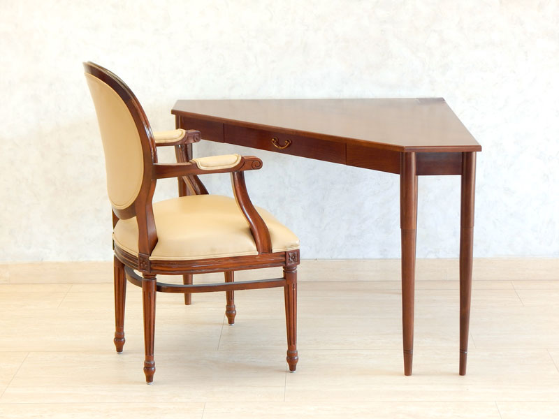 A tető dió, mahagóni vagy paliszander borítású. A káva és az esztergált lábak diófából készülnek .