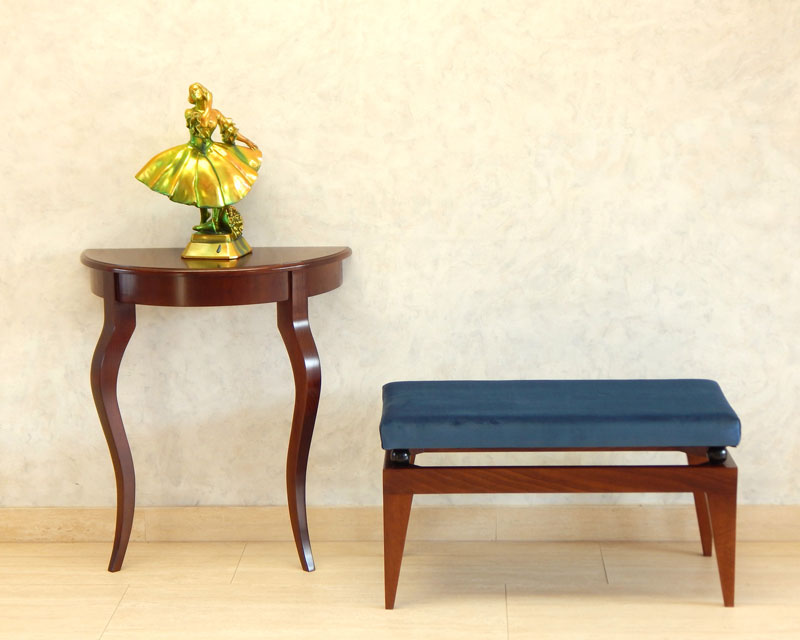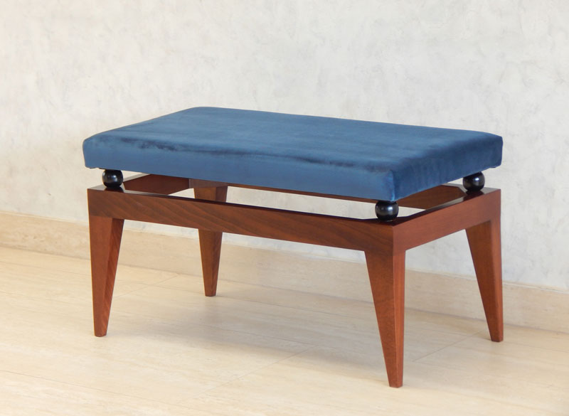 A káva és a lábak diófából készül, az ülőrészt 4 db golyó tartja.  60 cm bútorszövet szükséges hozzá,melyről a megrendelő gondoskodik. Mérete: 80 x 40 cm, magassága, 45 cm.