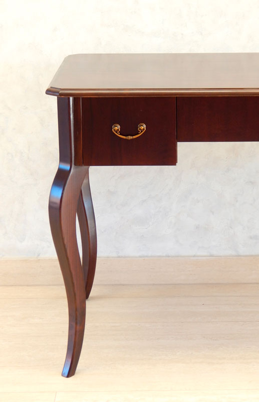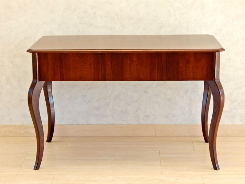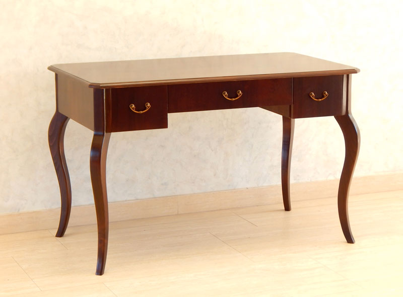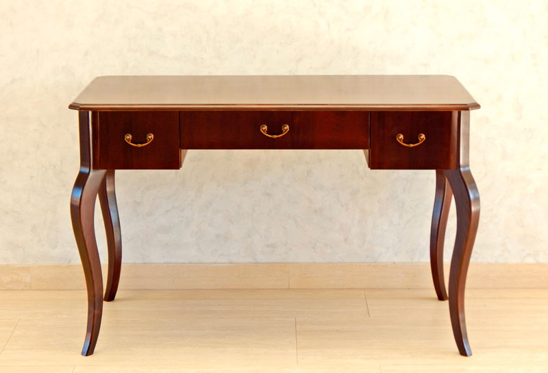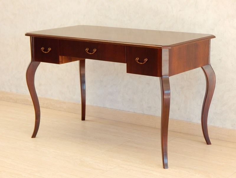 Biedermeier kabriollábú íróasztal [A-12] Árukód : [A-12] Ár: 295 000 FtDió vagy cseresznyefa borítással, 3 db fiókkal, diófa hajlított lábakkal.Méret:120 x 66 cm, magasság: 77 cmA méret és formaváltozás 10 – 30 % felárat jelent.