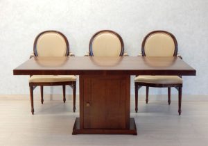 Árukód : [C-41] Ár: 450 000 Ft Diófa, mahagóni vagy paliszander borítással, az asztal talapzata edénytároló, 1 db ajtóval és 1 db polccal. Mérete miatt a helyszínen szereljük össze. Mérete: 180 x 90 cm, magassága: 77 cm.A méret és formaváltozás 10 – 30 % felárat … Megnézem