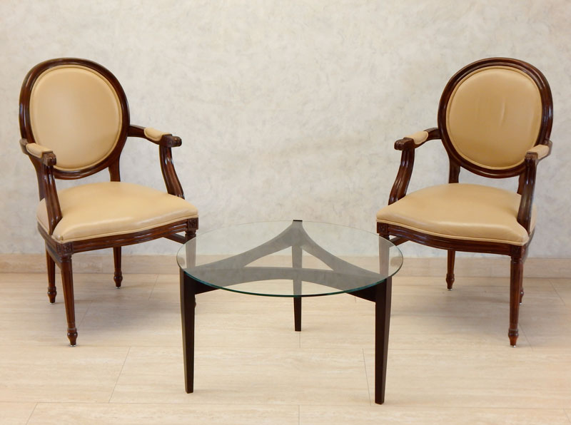 A lábai és az íves káva diófából készül.