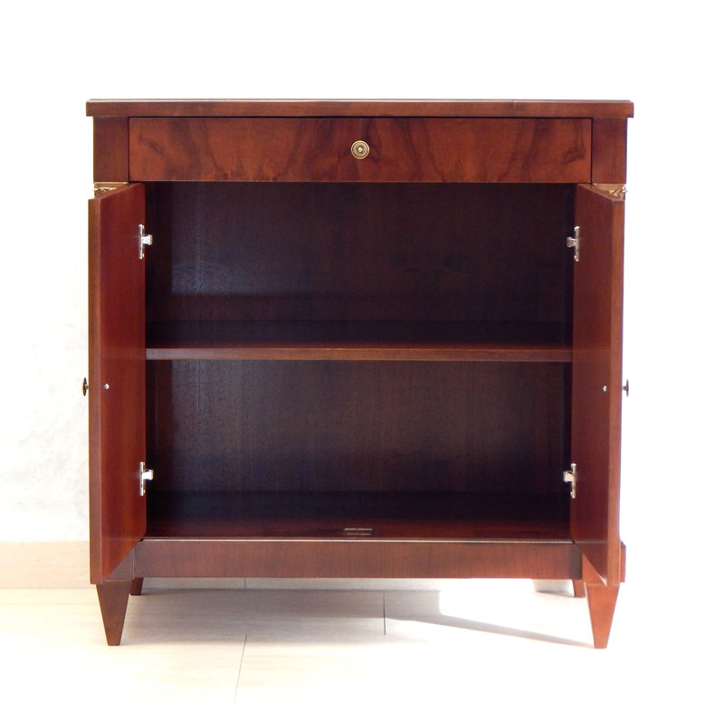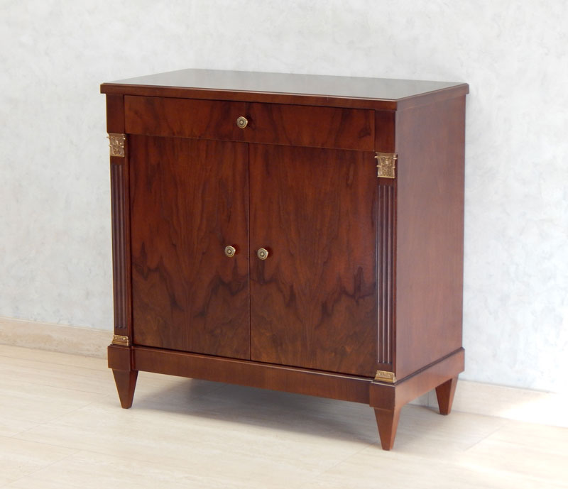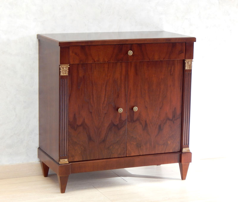 Empire trümó [H-17] Árukód : [H-17] Ár: 285 000 FtDiófa vagy mahagóni borítással, réz korinthoszi oszlopfővel és talapzattal, holkeres díszléccel.Méret: 92 x 45 cm magassága: 94 cmA méret és formaváltozás 10 – 30 % felárat jelent.