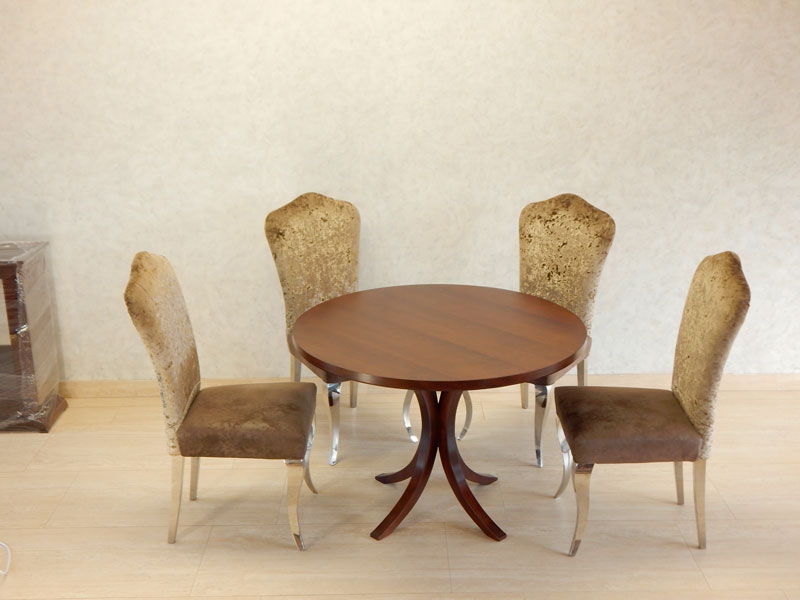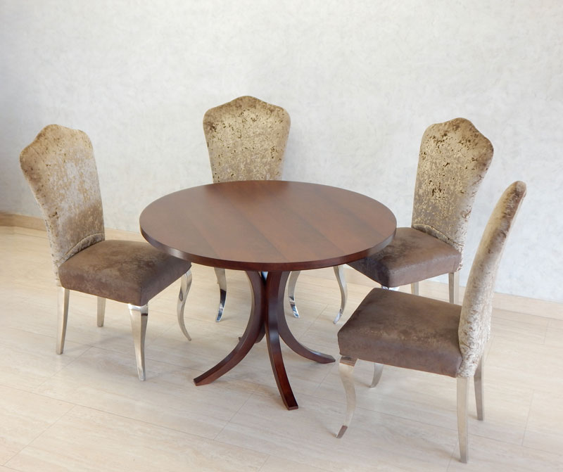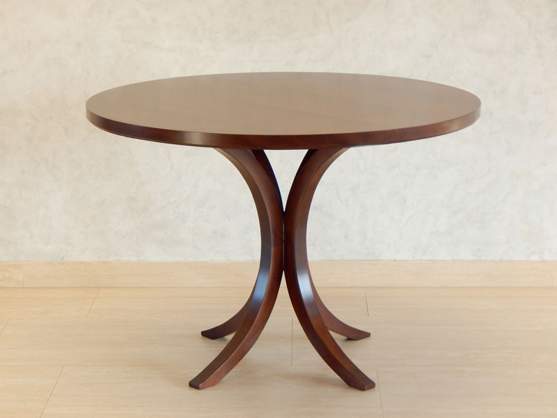 Étkezőasztal 4 személyes íves lábú [C-39] Árukód : [C-39] Ár: 295 000 FtTető diófa, mahagóni vagy paliszander borítású, lábai diófából készülnek.Mérete: tetőátmérő: 110 cm, magassága: 77 cm.A méret és formaváltozás 10 – 30 % felárat jelent.Bútorkészítés megrendelés alapján! Házhozszállítás az ország egész területén!