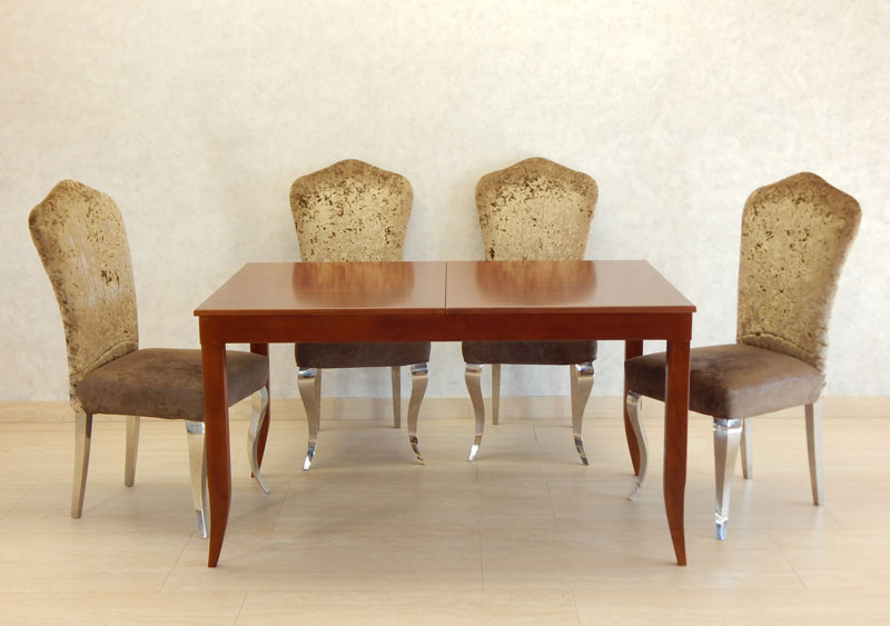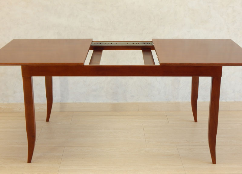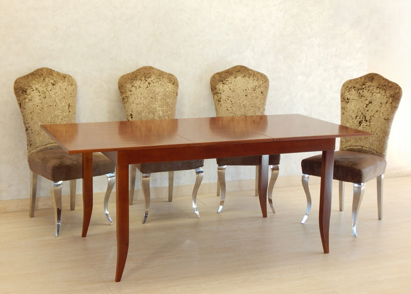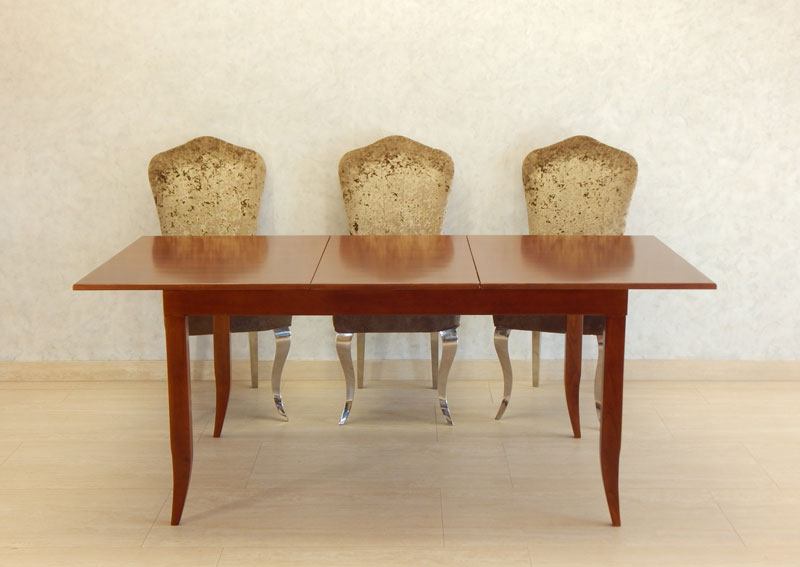 Dió ,cseresznye vagy paliszander borítással, diófa íves lábakkal. Bővíthető vendéglappal.