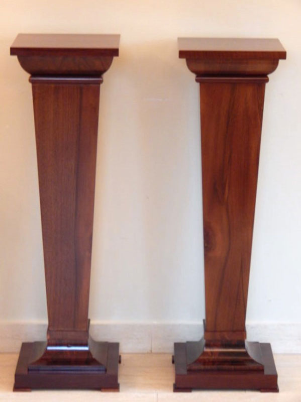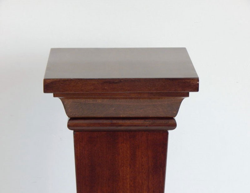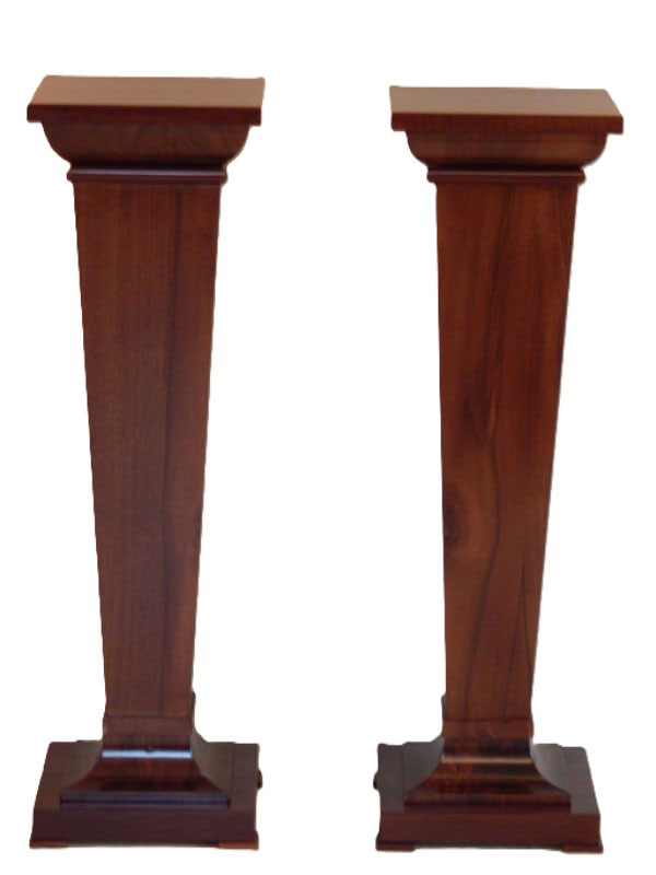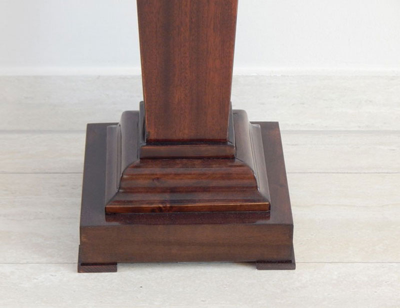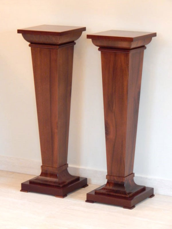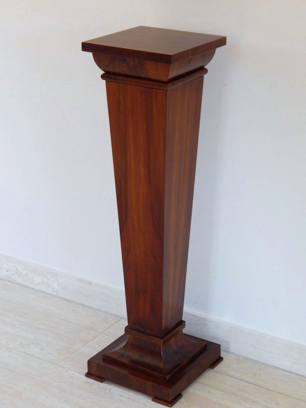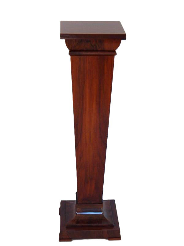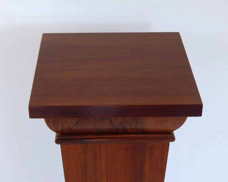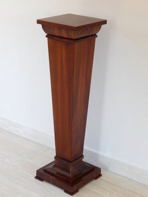 Diófa, mahagóni vagy paliszander borítással. Felülről keskenyedő oszloppal, íves tetővel és talapzattal. Méret : Tető: 26 x 26 cm. magasság: 95 cm. Az ár 1 darabra vonatkozik.