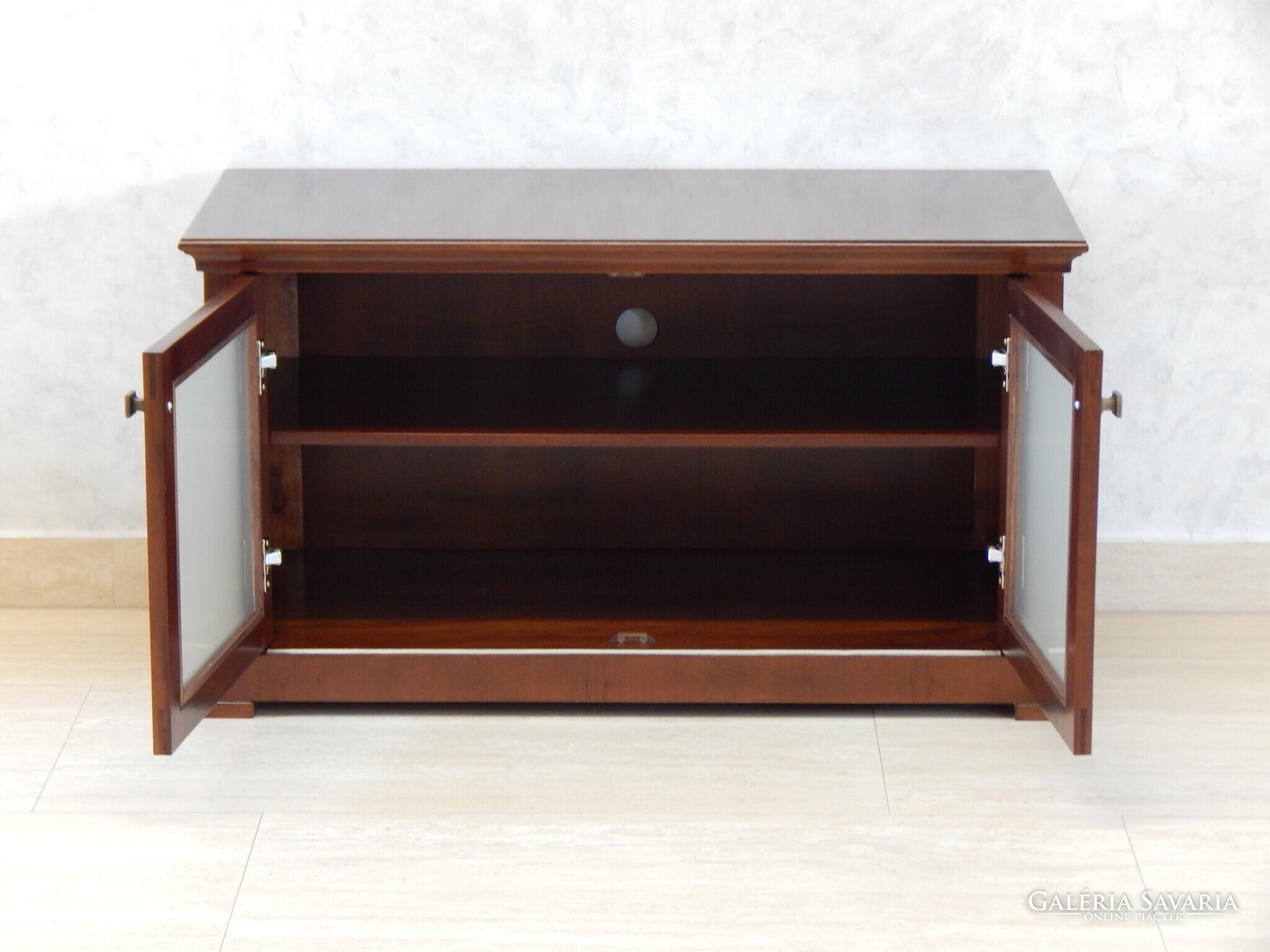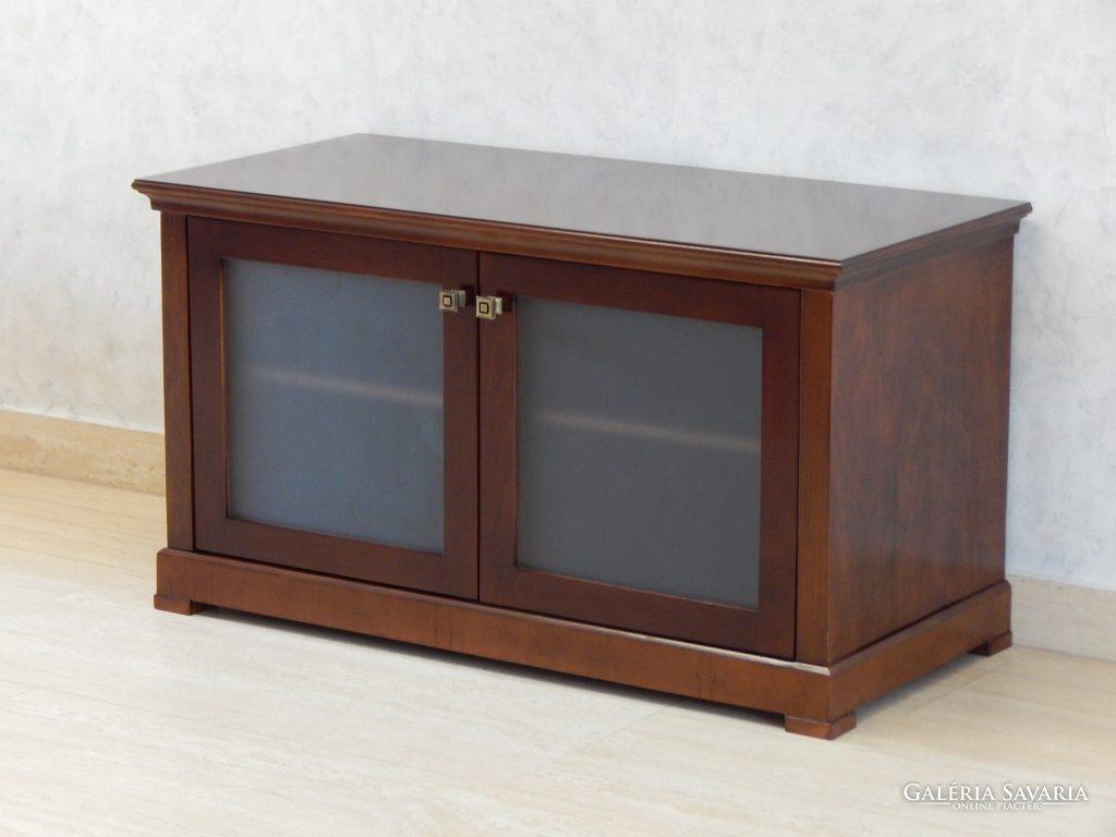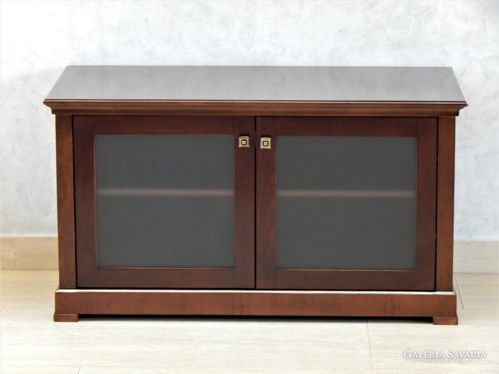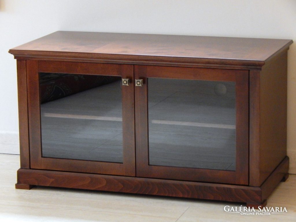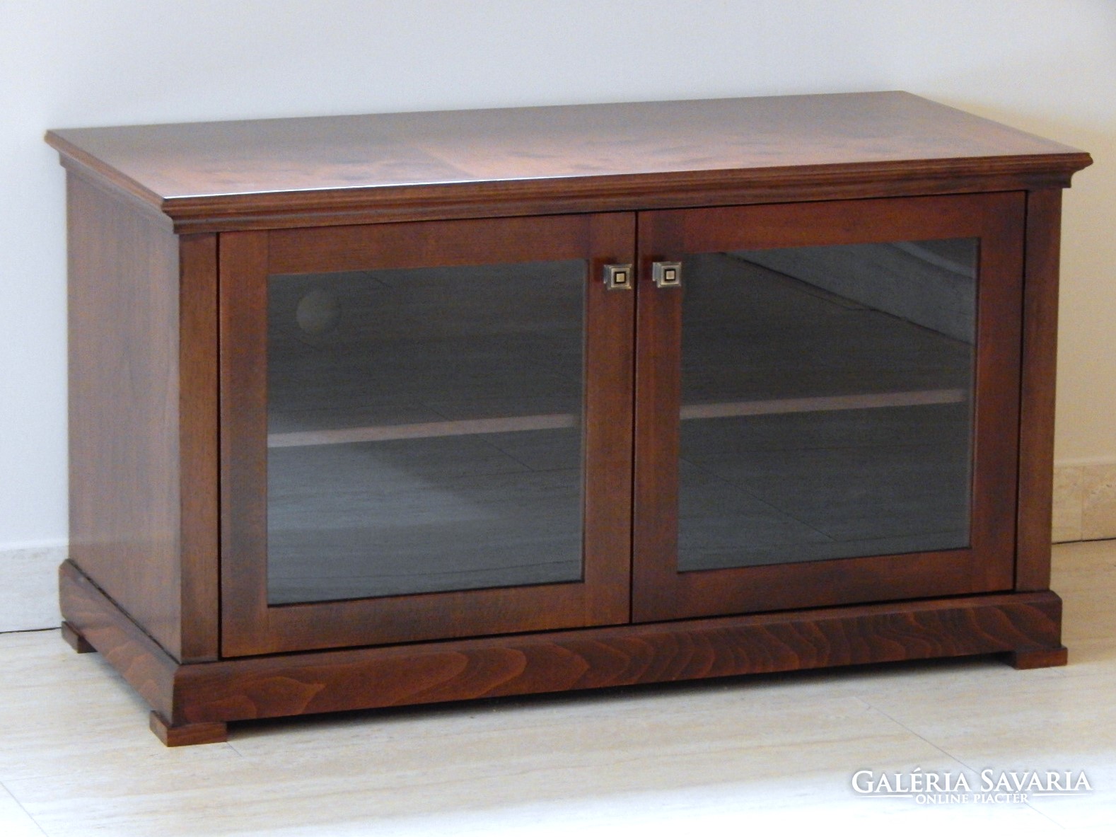 Diófa, mahagóni vagy paliszander borítással, 2 db üveges ajtóval,1 db polccal. Polcmagasság: 2 x 21 cm. Méret:100 x 45 cm, magasság: 55 cm. A méret és formaváltozás 10 – 30 % felárat jelent. Bútorkészítés megrendelés alapján! Házhozszállítás az ország egész területén!